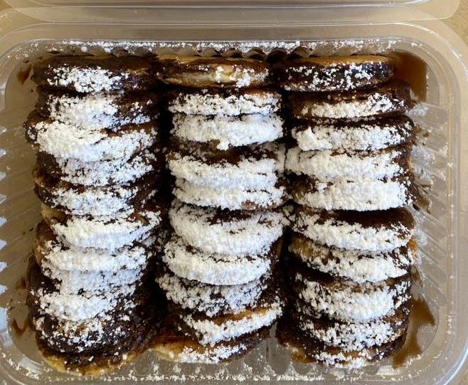 Bandeja de 30 unidades, sabor vainilla, acompañado de jarabe de chocolate y azúcar impalpable.